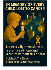 Today, we unite in remembrance of every child whose life was taken by cancer. Each light we shine honors their courage, their dreams, and the love they left behind. Let this glow be a beacon of hope — a promise to fight for a future where no child suffers from this disease. Together, we remember. Together, we strive for a cure.